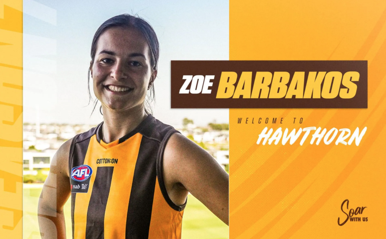 Zoe Barbakos’ meteoric rise through the footballing ranks to become Hawthorn’s second ever Hawthorn AFLW signing has been inspiring.
